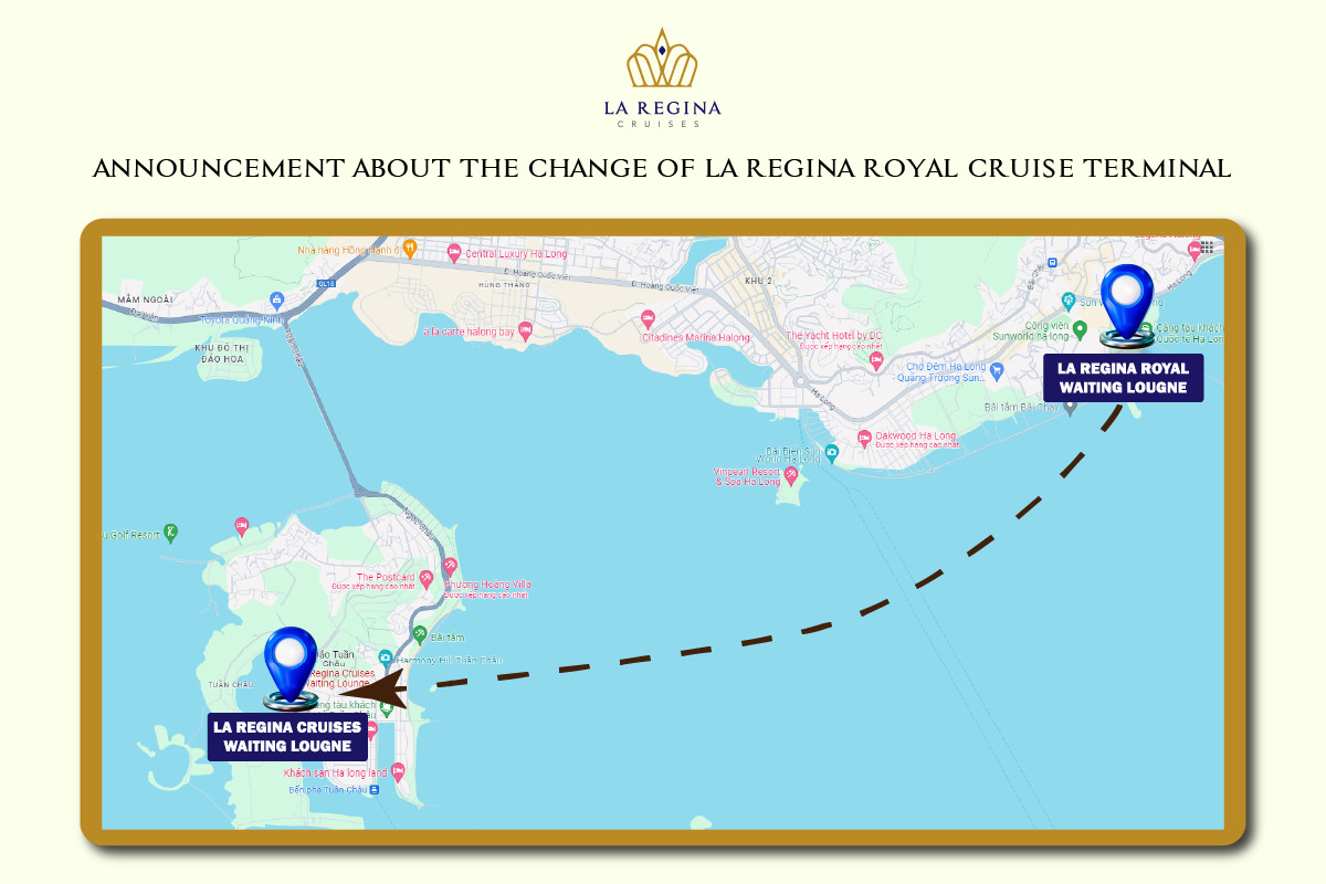 To provide a better experience for passengers right from the start of their maritime journey, the La Regina Cruises system would like to announce with great pleasure that starting from April 20, 2024, La Regina Royal Cruise will officially change its terminal from Sun Group port to Lot 24 at the Tuan Chau International Port (Quang Ninh). La Regina guarantees the terminal at Tuan Chau port to offer the best space and convenience to ensure customer satisfaction.